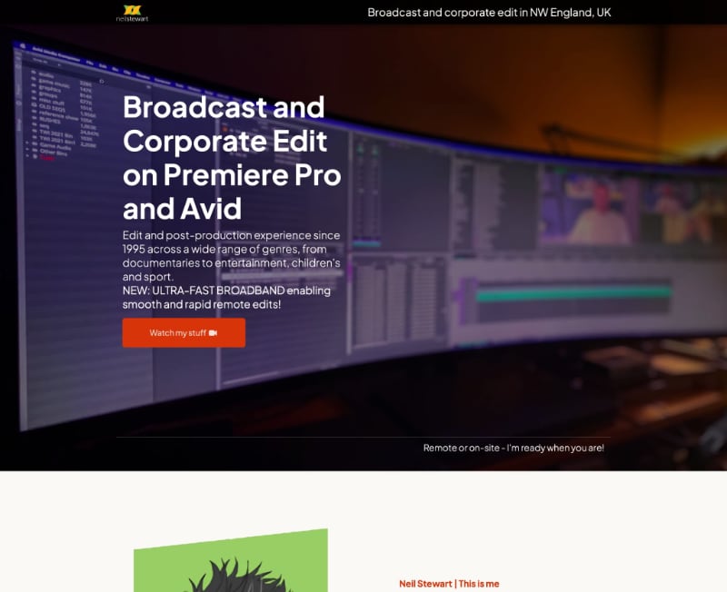 Broadcast and Corporate Edit on Premiere Pro and Avid Edit and post-production experience since 1995 across a wide range of genres, from documentaries to entertainment, children's and sport.